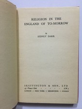 014681 Dark, Sidney Religion In The England Of To- Morrow Skeffington And Son London 120 Pages. 3/4 Pin Holes On Last Pages. External Wear BINDING - Hardcover. No Jacket English 8vo - over 7¾ - 9¾" tall 1st Edition CONDITION - used/Average.