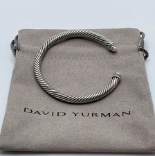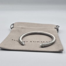 David Yurman 5mm Sterling Silver Bracelet, Pearls and Diamonds. Includes a David Yurman pouch. Style: Cable Classics Cuff Bracelet.