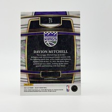 The product is a 2021-22 Panini Select #23 Concourse Retail Blue Kings Rookie RC trading card featuring Davion Mitchell. This single-parallel card is produced by Panini America, Inc. in the United States. The card is made of standard card stock with a 20 Pt. thickness and is in English language. It is an original rookie card of Davion Mitchell from the National Basketball Association (NBA) and belongs to the base set of the 2021-22 Panini Select series. The card was not autographed and is in near mint or better condition.