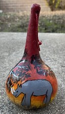 8 inch tall, 4 inches in width Decorative African Hand Made Painted Gourd Kenyan Animals, Rhino, Elephant with trees in excellent condition. Please review all photos of actual gourd. Thank you for looking & have a great day!