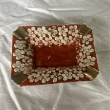 Decorative Floral Ceramic Rectangular Ashtray Japan Orange White Gold Glossy