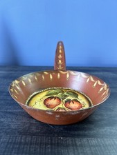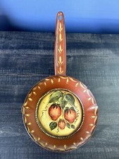 Decorative Metal Skillet Hand Painted Fruit Pan Signed Dated 1978 Hangable Decor ** Some tarnish/discoloration where the handle attaches to the pan. It also has surface scuffs. Please see pictures for reference. Pre-owned condition.