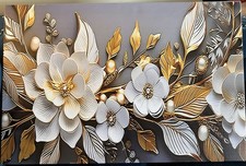 This decorative wall piece is a large, handmade canvas art statement that showcases a theme of art. The 3-D piece of wall art features a subject inspired by flowers, making it an original and unique addition to any living space. With its large size and striking design, this unit is sure to be a focal point in any room, adding a touch of personalization and artistic flair to the space.