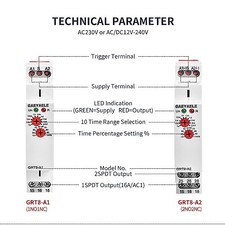 Function Mode: A1 model is Delay On device. Relay Status : Status is indicated by the LED indicators. Product Size: Ultra-small size, only 18mm width, 35mm rail mounting.