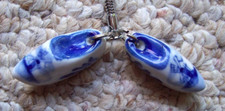 For sale is a key chain. It has two 1 1/4" long porcelain clogs attached to it in the style of wooden shoes. They are painted in the Delft style. It is in good condition. Thanks for looking.