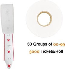 3000 tickets per roll, 2-digit queue number from 00-99. Manufacturer Part Number3000-5TR-00-99 A Complete Kit Includes: 5 rolls take a number tickets. Total 3000 tickets per roll. 5 rolls of number tickets for waiting line.