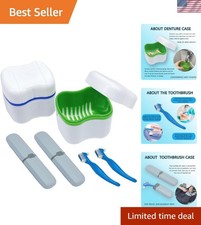 Denture Cup Kit, 2 Denture Case with 2 Denture Toothbrush & 2 Portable Toothb...