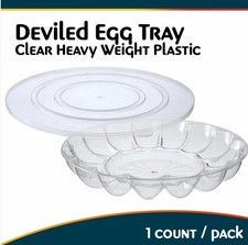 Serve deviled eggs the easy way with this Clear Plastic Deviled Egg Tray with Lid. The tray securely holds up to 12 deviled eggs and includes a clear snap-on lid for easy transport and storage. • Holds 12 deviled eggs securely.
