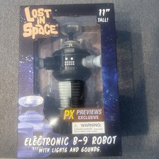The Diamond Select Toys Lost In Space Electronic B-9 Robot is a collector's item designed for fans aged 17 years and up. This replica of the iconic robot from the popular TV show features lights and sounds, bringing the futuristic and mysterious world of outer space to life. With its attention to detail and high-quality construction, this toy is sure to delight fans of all ages. Incredible NIB collectible condition as per pictures non smoking environment please email any questions great collectors item
