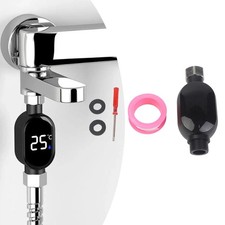 Material:304 stainless steel interface / PC. Indicator light: blue (0℃ ~ 28℃); green (29℃ - 39℃); red (39℃~>99℃). The real color of the item may be slightly different from the pictures shown on website caused by many factors such as brightness of your monitor and light brightness.
