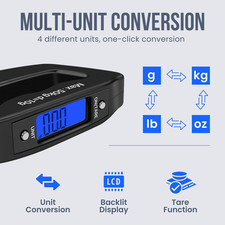 Digital Luggage Scale, Baggage Weight Scale, 110 Lb (50 Kg) with 10G Deviation, Portable Handheld Suitcase Weight Scale with Hook for Travel, Fish Weighing, Black. This rugged baggage weight scale is for on-the-go checks.