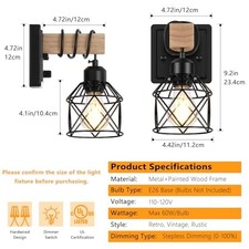 【Upgraded Rotary Switch Wall Lights】0-100% Dimmable. The wall sconces set of two has been updated with a rotary switch, allowing you to adjust the brightness conveniently. The dimmable wall sconce with switch is suitable for indoor use and can be installed anyw you like, such as bedrooms, bathrooms, living rooms, vanities, porches, hallways, farmhouses, stairs, cafes, bars.