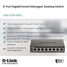 D-Link Ethernet Switch, 8 Port Smart Managed Gigabit Desktop EEE Network Internet (DGS-1100-08V2).