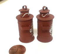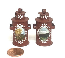DOLLHOUSE MINIATURE SET OF 2 HAND PAINTED MILK CANS