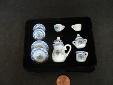 DOLLHOUSE PORCELAIN TEA SET. Use these beautiful miniatures to decorate dollhouses,shadow boxes. or 1:12th scale.