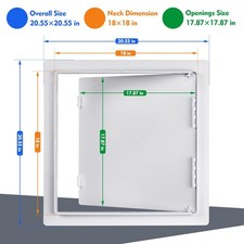 Manufacturer Donext. size 18x18 in. DURABLE: This plastic access door is made of high-strength polystyrene plastic with excellent impact resistance, durability and resistance to corrosion, fading or deformation.