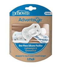 Dr. Brown's Advantage One-Piece Silicone 3 Pack, 0-6m, Blue/Light Blue/Gray