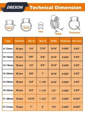 DREXON Hose Clamp Assortment 200PCS 304 1/4"~2"(200pcs), Silver