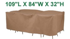 Duck Covers ETO10984. Fits Outdoor Rectangular/Oval Patio Table and Chair Sets 109" Long. Designed to protect patio furniture from dust, dirt, sun, rain and mild snow. Essential Cover. Water resistant.