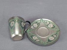E.G. Webster Enameled White Floral & Green Scrollwork Silverplate Cup & Saucer