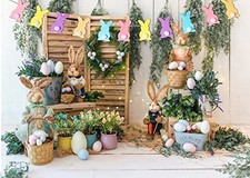 Easter Backdrop Spring Garden Rabbit Decoration Flower Stand Photography 7x5ft