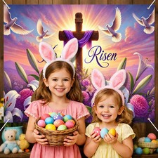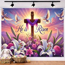 Easter Christian Backdrop He Is Risen Cross Lily Flower Scene Spring Religious C