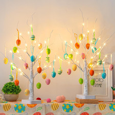 Egg Trees: Covering artificial birch bark, the branches are adjustable and bendable. Bend & Shape: Customize the look of each birch tree uniquely. Style 2PK Easter Egg tree. PEIDUO Easter Decorations.