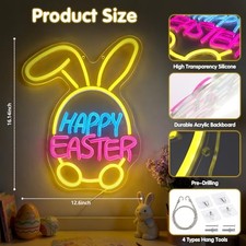 Easter Decorations LED Neon Sign - Happy Easter&Rabbit&Egg Window Lights,USB  additional preview