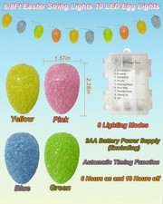 Easter Egg String Lights Battery Powered 6.8FT 10 LED Egg Shaped Lights with Tim