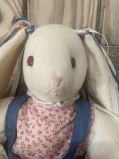 19” long handmade bunny country farmhouse style. It is 13” wide. I used it in a basket on my table. Took plenty of pics. In great shape. The small little basket comes along with bunny.