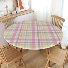 Easter Plaid Round Fitted Tablecloth with Elastic Spring Pastel Table Cloth