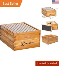 Standard Langstroth Size: 16-1/4" x 19-7/8" x 9-5/8". The thoughtful design, coupled with materials, makes this bee box an indispensable asset to your apiary. Type: Langstroth Bee Hive. Thicker Beeswax Coating: Provides enhanced durability and waterproofing, eliminating the need for painting and maintenance.