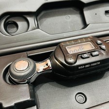Product: Digital Torque Wrench. Features: Digital display for monitoring torque values. Suitable for automotive maintenance, machinery, and DIY. Accessories: Dedicated hard case included. Condition: Used item with scratches and dirt.