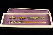 Edo Period Japanese Kozuka, Kogai & Menuki Set Phoenix Motif, Red Copper Antique