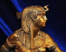 BRONZE ORMOLU. EGYPTIAN - NEOCLASSICAL - NOUVEAU - DECO. LARGE RARE BRONZE CLEOPATRA STATUE / SCULPTURE. AGE WEAR AS SHOWN. SOLD AS IS.