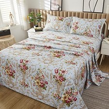 Egyptian Size Cotton Bed Sheets Set (1000 Thread Count) Floral Queen Blue