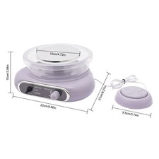 Specifications Color: Taro Grey Material: Plastic, Aluminum Alloy Process: Electroplating Plug Type: US Standard Power Source: Corded Electric Speed: 0-200rpm Stepless Speed Control Adapter Input: AC 110-240V, 50/60Hz Adapter Output: DC 12V, 2A Power: 24W Load-bearing Capacity: 400g/0.88lbs Turntable Diameter: 12cm/4.72in Pedal Switch Diameter: 9.5cm/3.74in Product Size: 22*21*10cm/8.66*8.27*3.94in Package Size: 27.5*11*21cm/10.83*4.33*8.27in Gross Weight: 1.68kg/3.7lbs Net Weight: 1.3kg/2.87lbs Package Included 1* Pottery Wheel Machine 1* Power Adapter 1* Pedal Switch 8* Sculpting Tools 2* Paint Brushes 3Bags* Clays 12* Paints 1* English Manual.