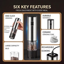 Experience the perfect blend of convenience and style with our Electric Salt and Pepper Grinder. 1 x Electric Salt and Pepper Grinder. Don't miss out on enhancing your culinary experience! Easy to Refill: Simply unscrew the top to refill with your favorite salt or pepper.