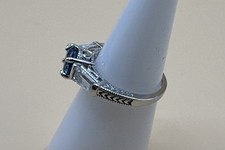 Elegant 925 Sterling Silver Blue & Clear Stone Ring/Size 6