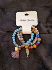 ANGEL WING AND ELEPHANT ~ Set of three elastic handmade bracelet. AND WHEN SALES ARE ONGOING.
