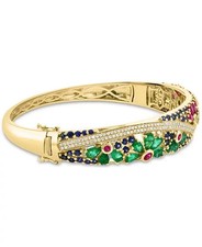 Emerald,Ruby,Sapphire,Diamond 14K Yellow Gold Over Flower Scape Bangle Bracelet
