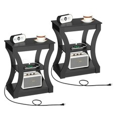 End Table Set of with Charging Station, Skinny Side Table with USB 2 Black