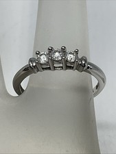 Engagement Ring Solid 10K White Gold 3-Stone Genuine Diamond 1.8gr. Size 7