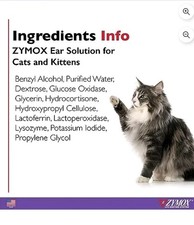 Zymox Enzymatic Ear Solution with 0.5% Hydrocortisone for Cats and Kittens 1.25 oz. Relieves itching due to minor irritation, inflammation and dermatitis. Safe for Cats and Kittens of all ages. Mfg Sealed.