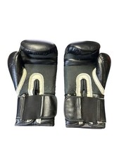 Pair of Everlast 14oz boxing gloves in black and gray, designed for training, sparring, and fitness workouts. Feature EverFresh anti-microbial lining to help prevent odors and mesh palm panels for ventilation. These gloves have a hook-and-loop (Velcro-style) wrist strap system for easy on/off and added wrist support. Condition is pre-owned with visible signs of use including wear on the inner wrist area, creasing on the striking surface, and some light scuffs and fabric fraying. All stitching is intact and gloves remain functional and structurally sound. Carefully packaged and shipped within 1 business day. USPS Ground Advantage available. Please feel free to contact us anytime with questions or to request additional photos.