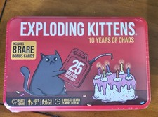 Exploding Kittens 10 Years Of Chaos Game (8 Rare Bonus Cards) Anniversary Tin