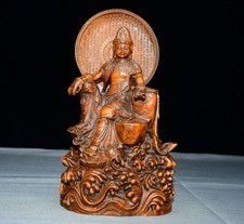 Exquisite Small Leaf Boxwood Backrest Guanyin Ornament