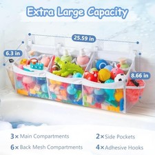 Extra Large Bath Toy Organizer with 3 Compartments and Multiple Pockets,