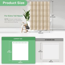 Extra Long Shower Curtain 72x84 Inch Tufted Chenille Striped Beige Shabby