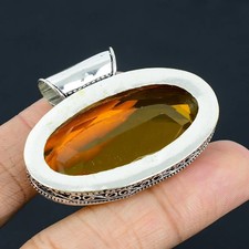 Faceted Citrine Gemstone Handmade 925 Sterling Silver Jewelry Pendant Sz-2''